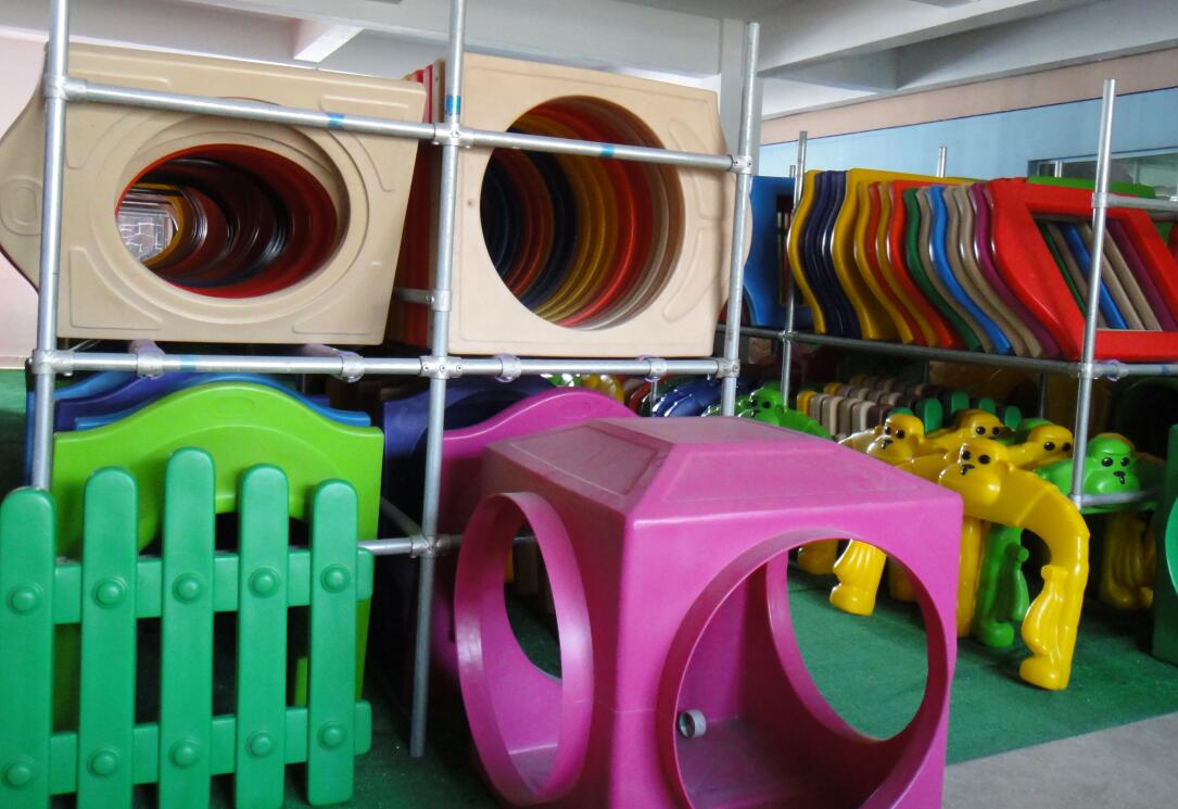 组合滑梯由以下配件组合而成,因此得名组合滑梯:门、过桥、滑筒、顶子、爬梯、扶手、台板、立柱、滑梯、攀爬管、和绳网;幼儿园滑梯全 部用扣件连接,表面没有任何尖锐物凸出……