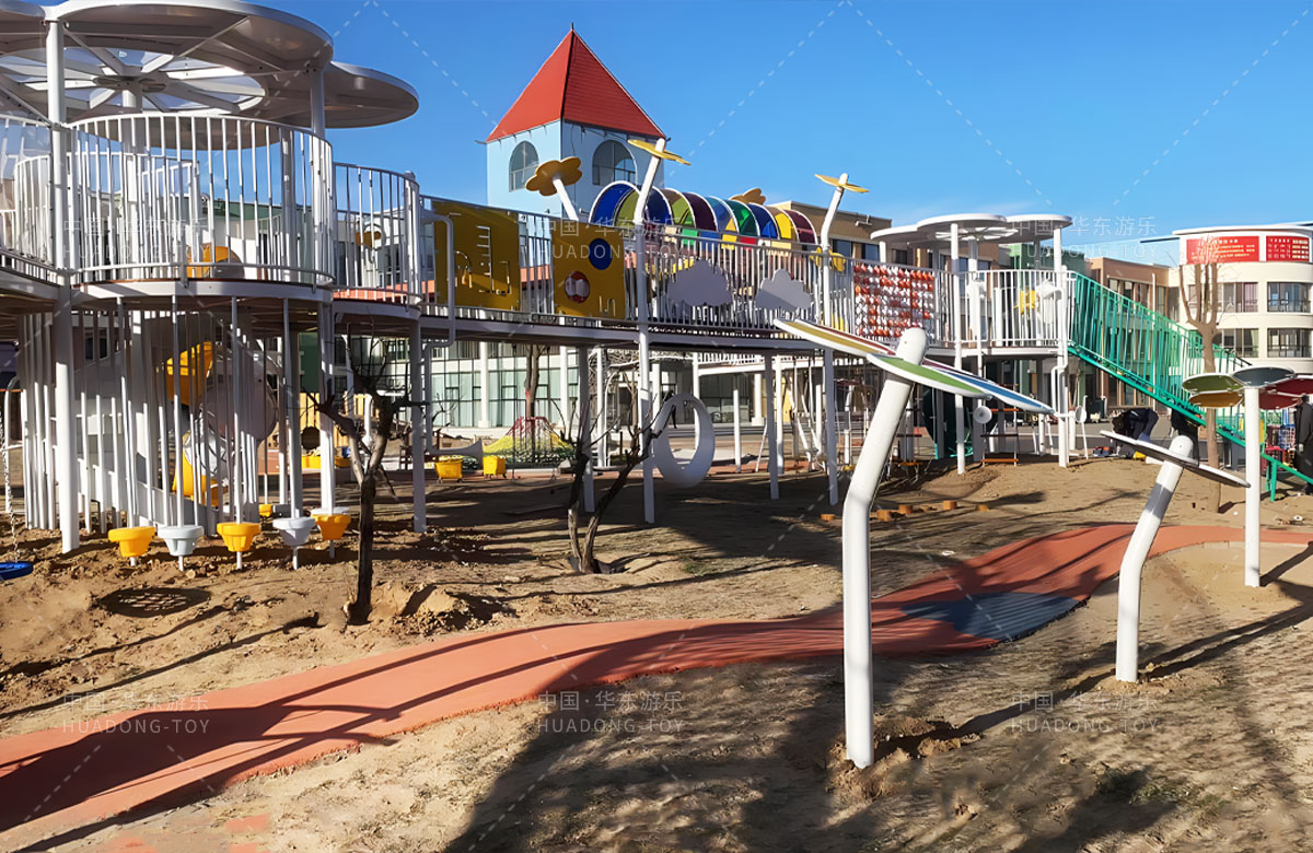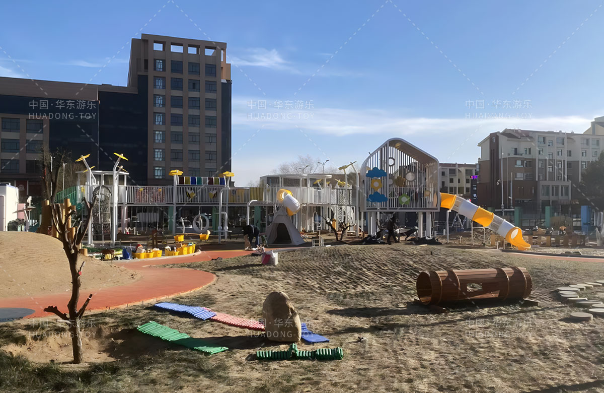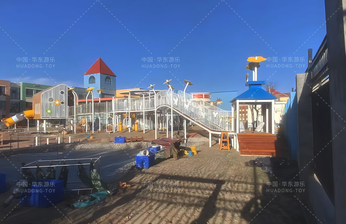 鄂尔多斯市鄂托克旗蒙古族幼儿园是一家专业的学期教育培训机构,此次选用的是ky开元游乐自主研发和设计的非标定制系列的游乐设备,分别设计了空中廊架、月亮秋千、平衡踩桩、儿童沙袋、大型滑筒、儿童秋千、攀爬网、游戏小屋等功能,为孩子的玩耍提供了保障,也为老师的教学提供了一个很好的场所。
